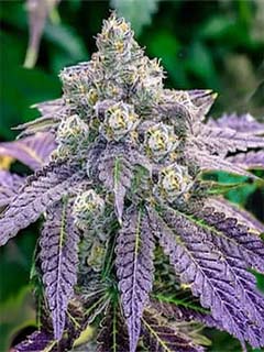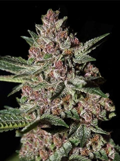A potent indica marijuana strain. A popular strain crossed with Critical Kush and OG Kush.  These buds have dense fluffy popcorn-shaped light minty green nugs with dark orange hairs, rich purple undertones, and a layer of fine translucent trichomes.